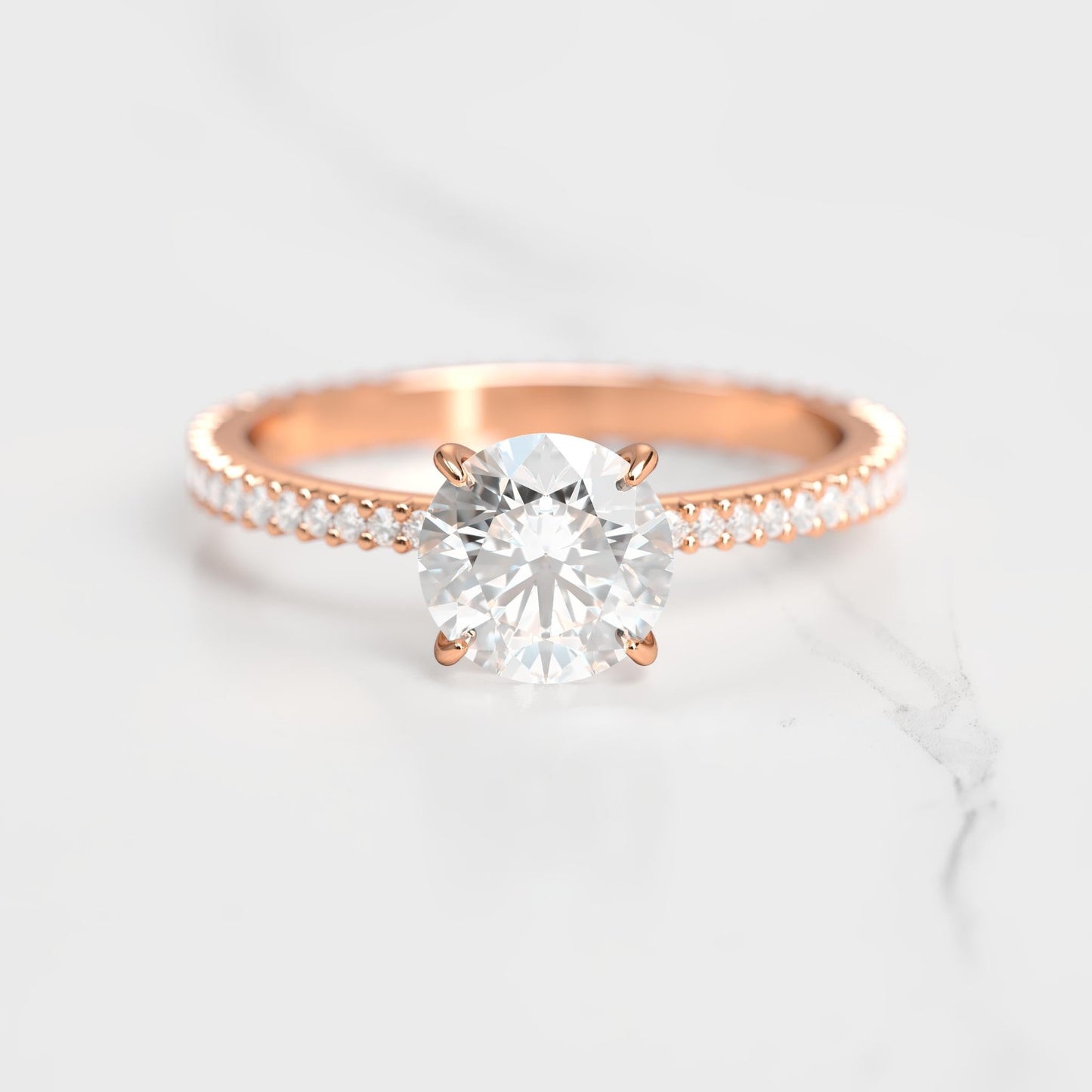 Dodatni sjaj za vaš solitaire prsten uz full pave tapered postavku koja pruža neprekidnu svetlucavost bez umanjivanja lepote centralnog kamena.