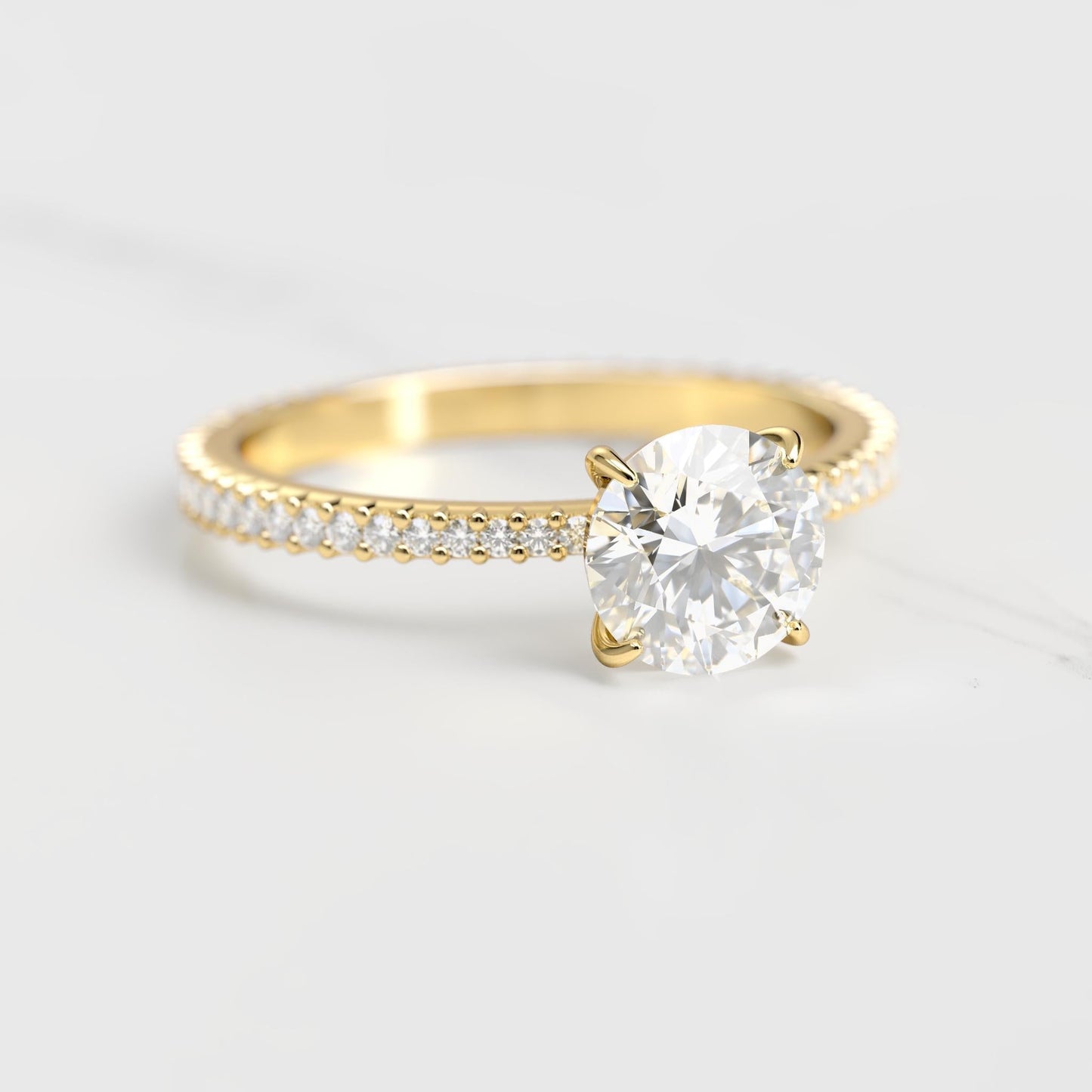 Dodajte svom svakodnevnom solitaire prstenu dodatni sjaj sa full pave tapered prstenom koji će vašem prstenu dati kontinuiranu briljantnost bez skretanja pažnje sa glavnog kamena.