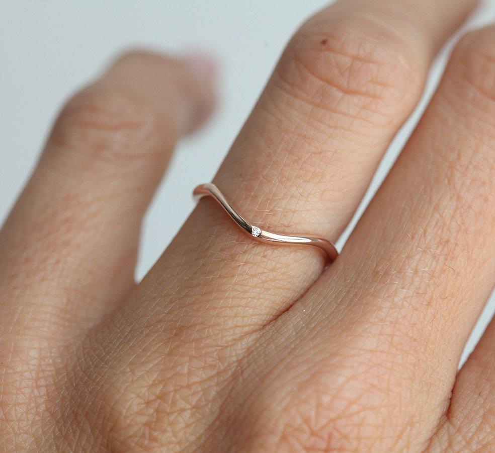 Nežan ručno izrađen prsten sa malim ugraviranim dijamantima. Izaberite broj dijamanata iz padajućeg menija. Molimo vas da navedete boju metala u napomeni: 14k roze / žuto / belo zlato.
