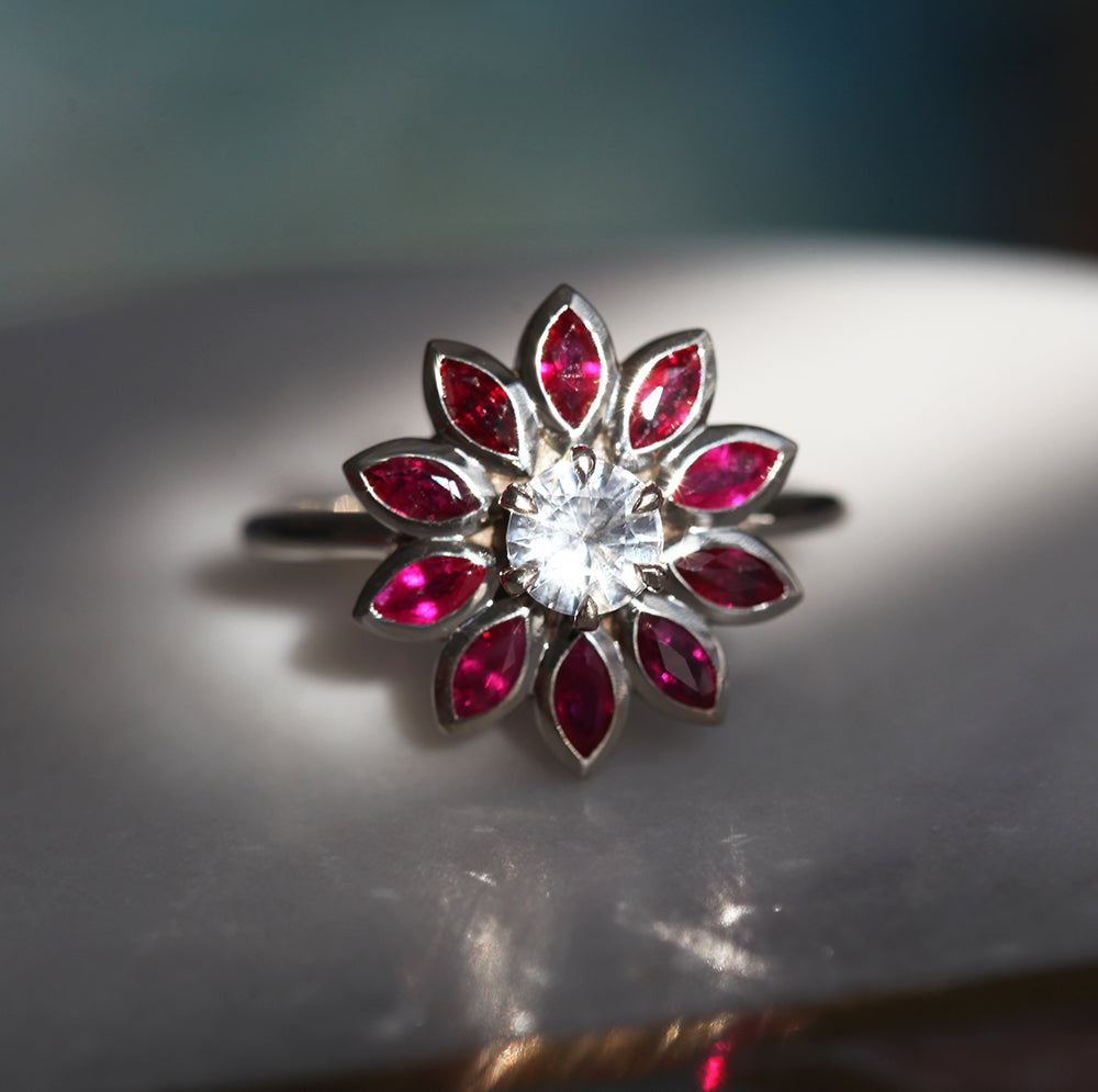Katy rubin i sapphire verenički cvetni dijamantski prsten
