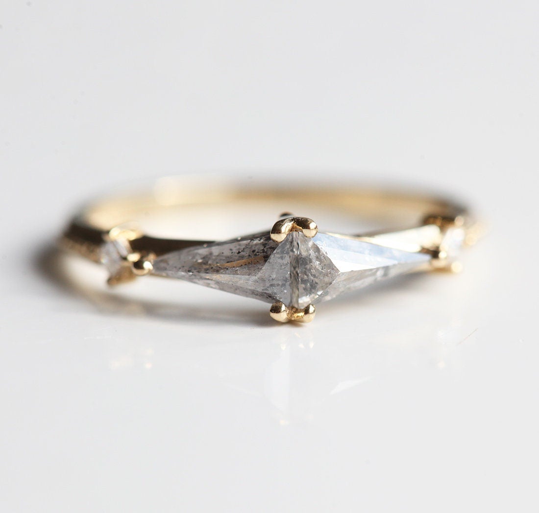 Jedinstveni salt and pepper dijamantski prsten sa belim princess dijamantima i milgrain detaljima. Odanost Art Deco stilu, ali sa modernim preokretom. Može se nositi samostalno ili u paru sa prstenom Vanessa.