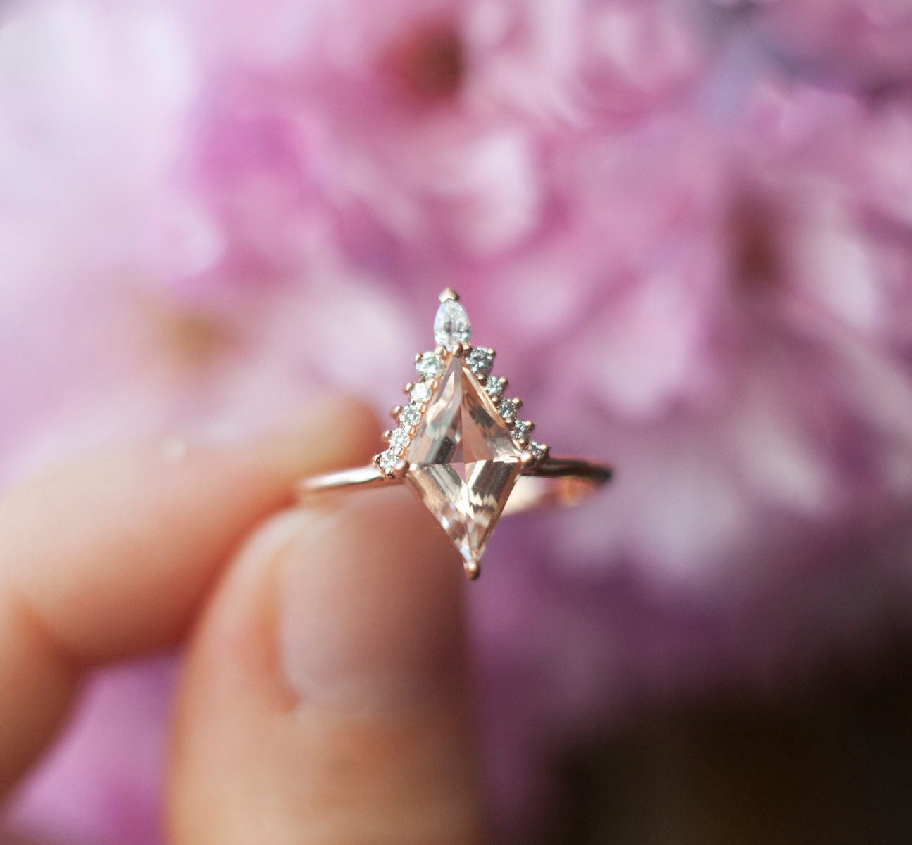 Prsten sa salt & pepper dijamantskim kamenjem, u obliku romba