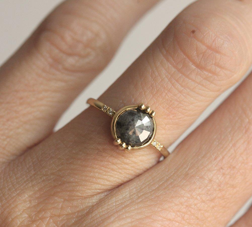 Gwen prsten sa okruglim "salt & pepper" dijamantom