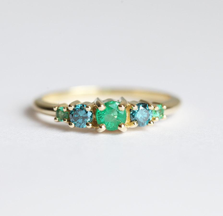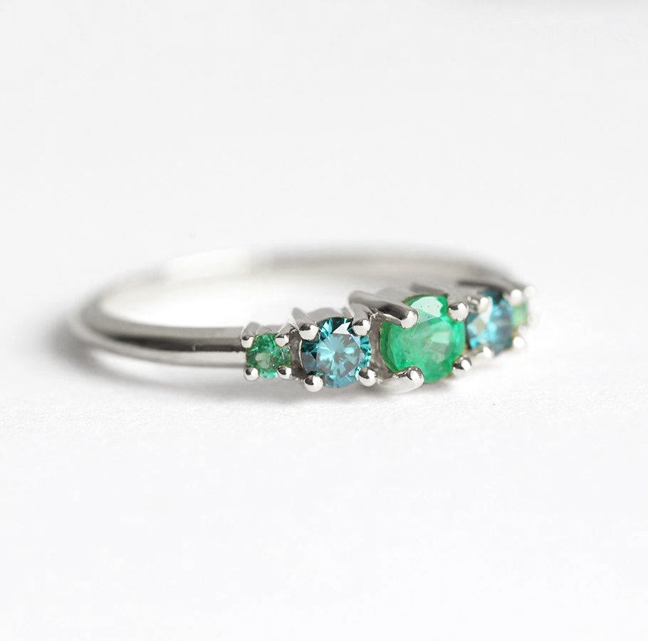 Cheyenne je moderan i elegantan izbor za vaše veridbe ili burmu. Prikazuje smaragde i plave dijamante u sofisticiranom rasporedu, pružajući savršen spoj luksuza i stila.
