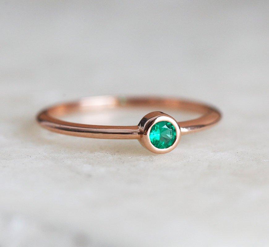 Prelep mali soliter smaragdni prsten. Može se nositi samostalno ili u kompletu sa uklašajućim smaragdnim prstenom.