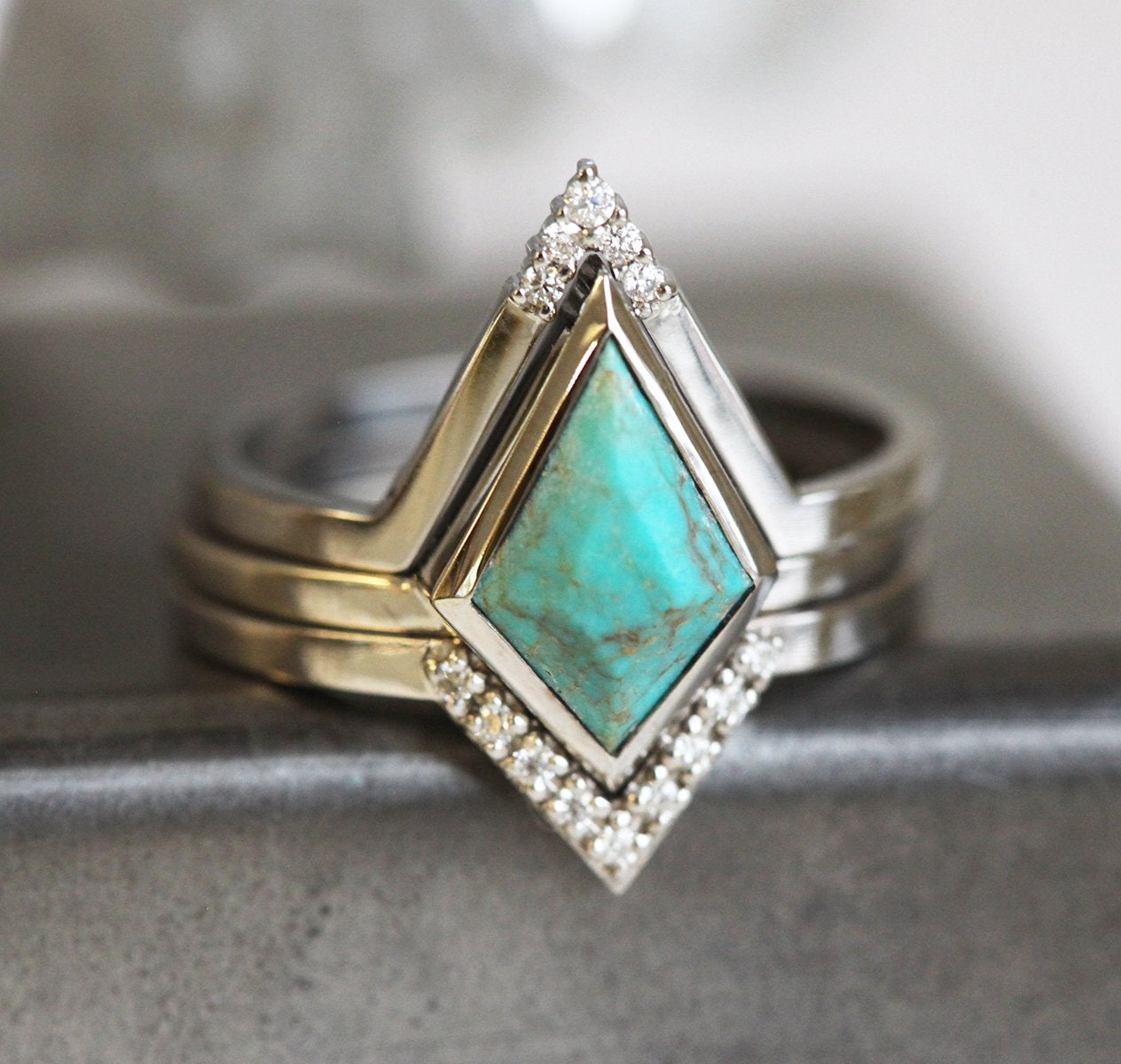 Proslavite ljubav sa našim luksuznim Catherine setom od tri prstena. Centralni kite tirkiz ukrašen je sa dva dijamantska pave prstena, pružajući blistav i sofisticiran izgled. Ovaj set unaprediće svaku odevnu kombinaciju.