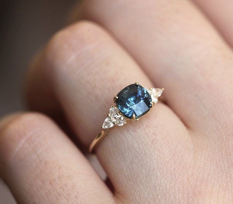 Charvi dijamantski prsten sa cushion cut safirom