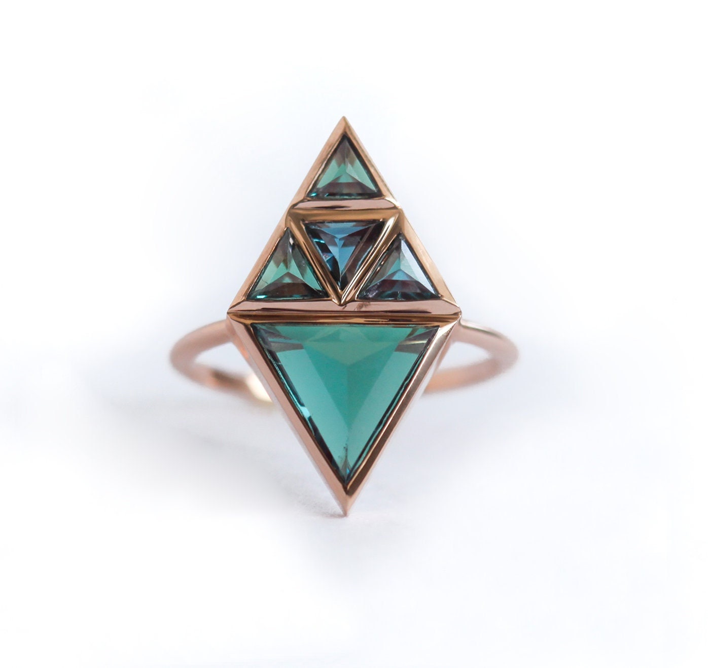 Prsten sa laboratorijskim aleksandritom u obliku romba