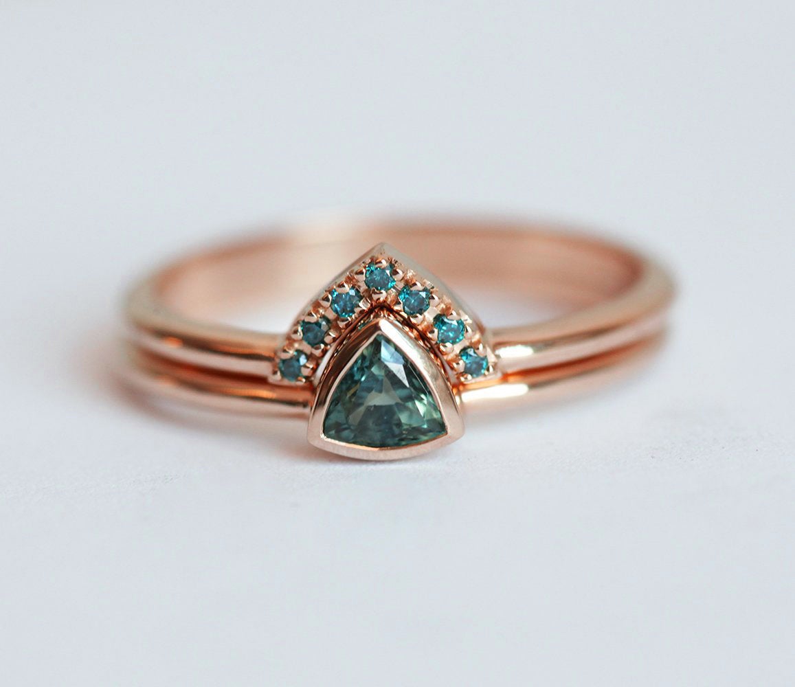 Brooke prsten set sa trillion cut tirkiznim safirom