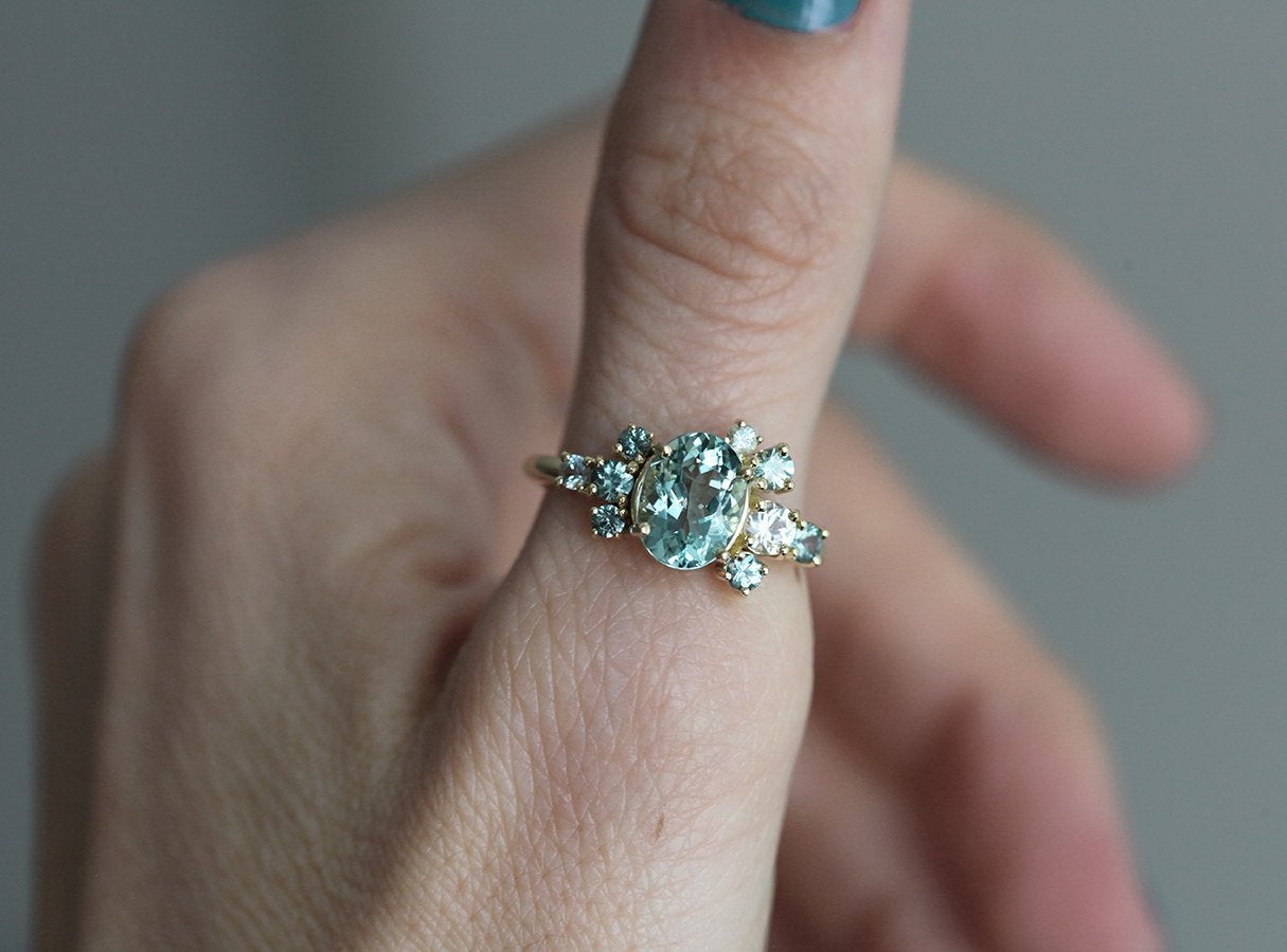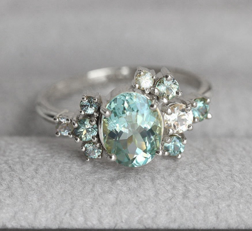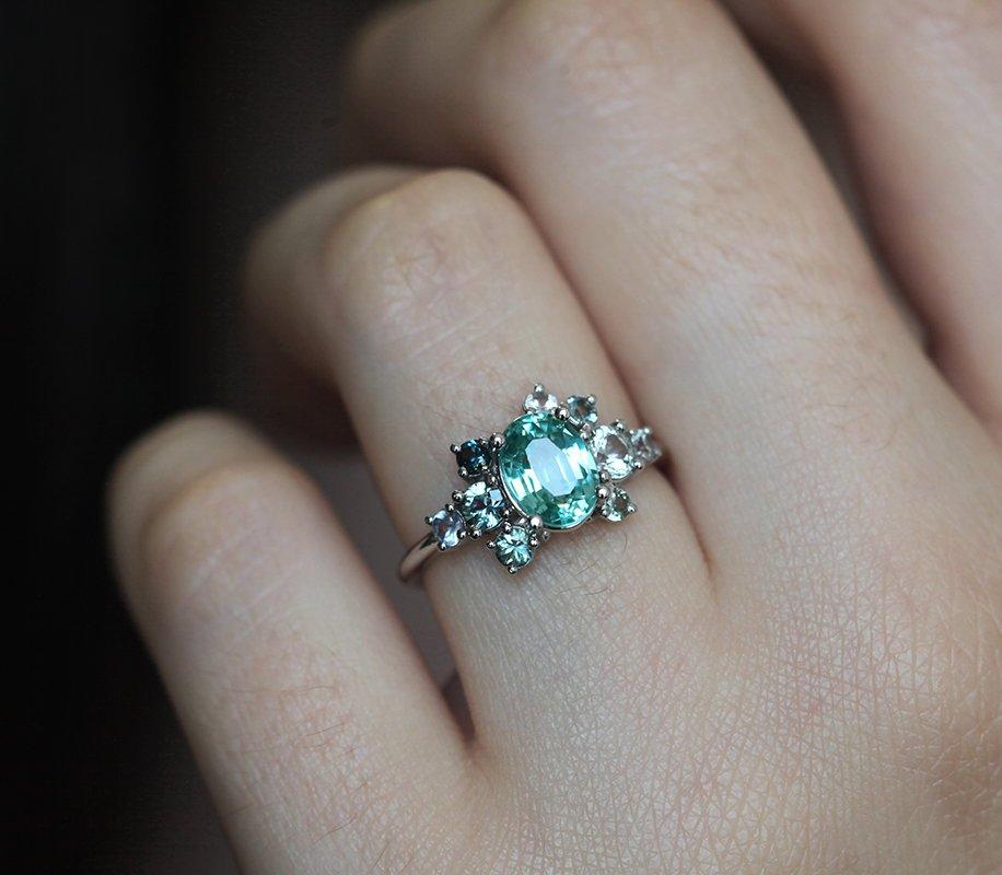 Sawyer klaster prsten sa zelenim turmalinom i safirom