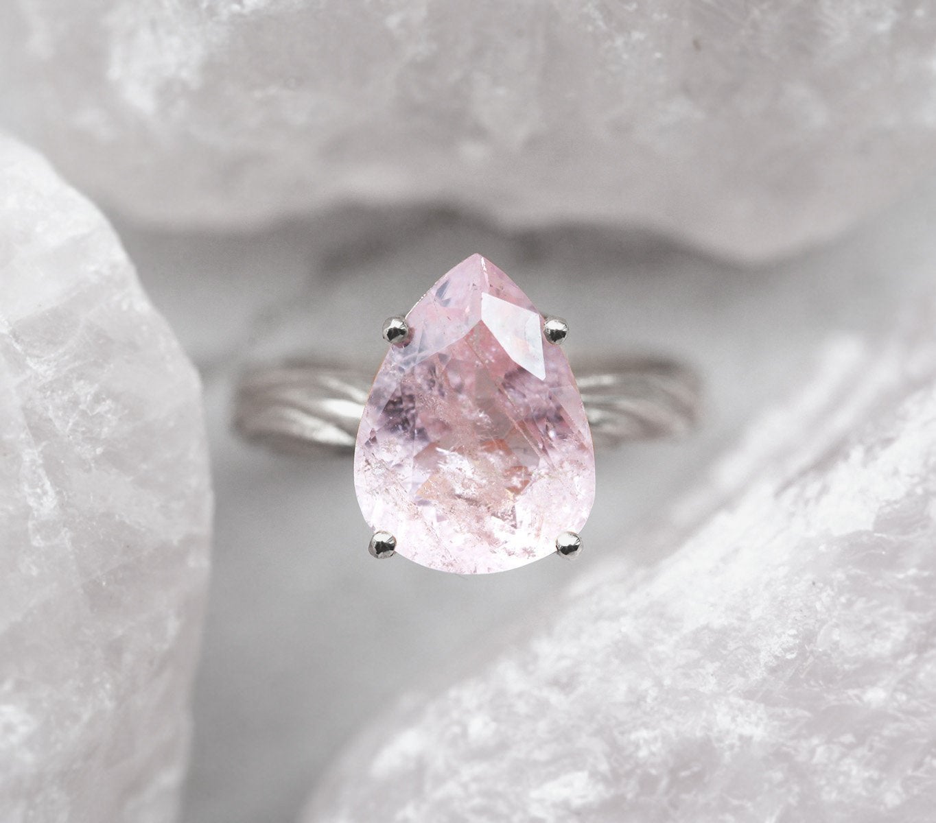 DIJAMANTSKI PRSTEN SA MORGANITOM U OBLIKU BRESKVE