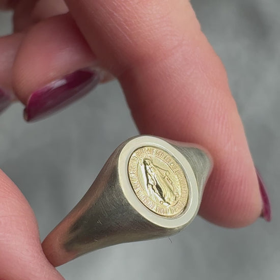 Prsten sa pečatom Device Marije od 14K ili 18K zlata - Spreman za otpremu