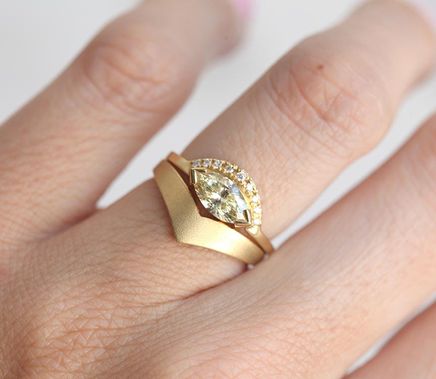 Ovaj veličanstveni champagne dijamantski prsten moderna je verzija egipatskog stila i stvoren je da očara. Za potpuni efekat lepote najbolje je kombinovati ga sa prstenom od teal safira.