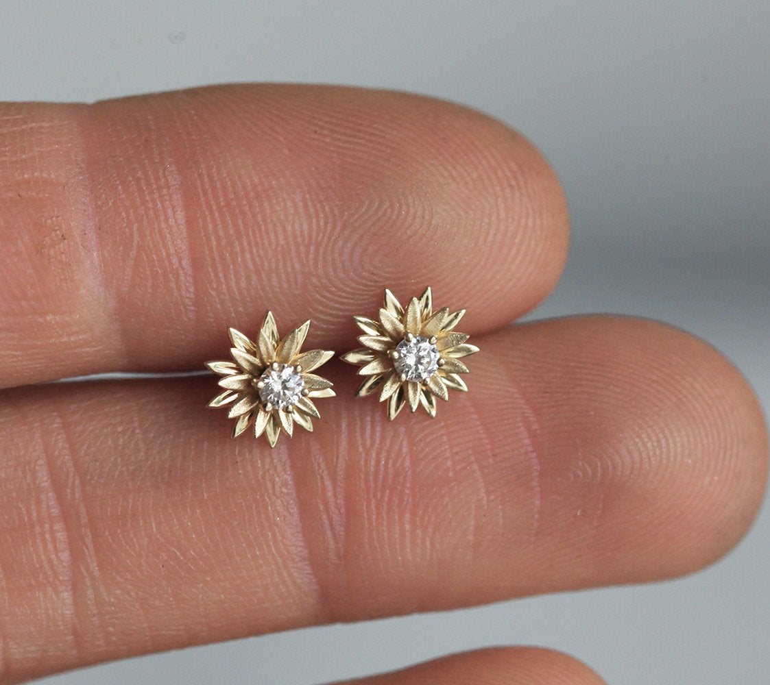 Zlatne minđuše u obliku suncokreta sa dijamantima