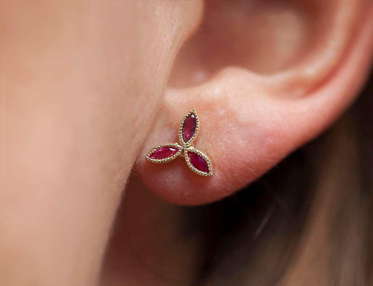 Predivan par jednostavnih minđuša sa crvenim marquise crvenim rubinom, dostupne u 14k punom roze, belom ili žutom zlatu. Ove sitne minđuše u obliku trougla su savršen poklon za godišnjicu ili rođendan za nju. Ovaj dizajn može biti napravljen sa dragim kamenjem po vašem izboru. Ako biste želeli personalizovane minđuše, molimo vas da nas kontaktirate pre kupovine.