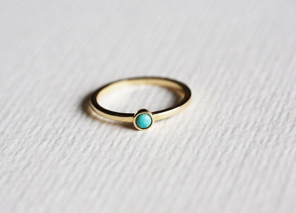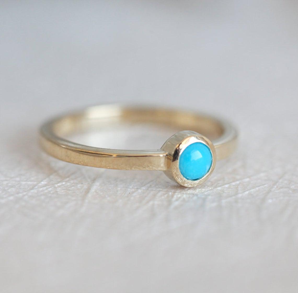 Nežan tirkizni soliter prsten u srebru ili zlatu. Savršen kao prsten sa kamenom rođenja ili promise ring za svakodnevno nošenje.